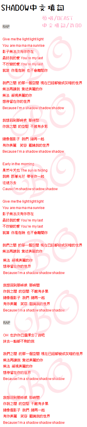一次要唱6個人的部分真是困難XD再加上 (小小聲說.... 許某BO英文發音非常之不標準-/- 所以! 請勿嘲笑>_<